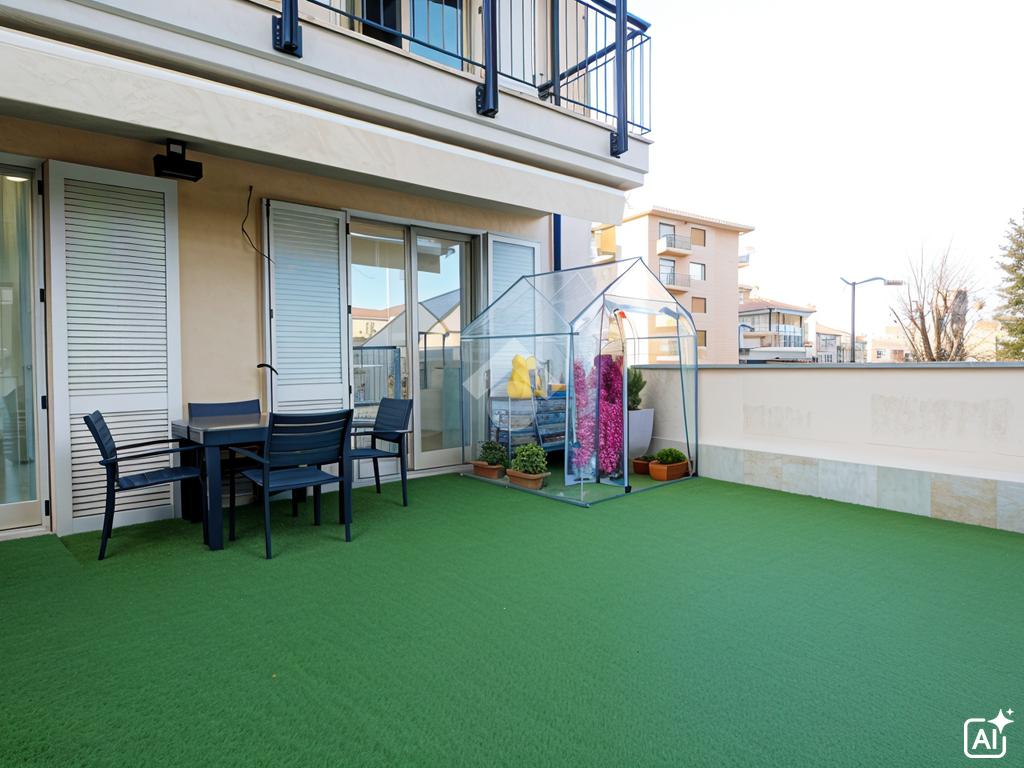 L'abitazione si apre su un luminoso soggiorno con angolo cottura, con accesso diretto a un ampio terrazzo ideale per pranzi e momenti di relax all'aperto.