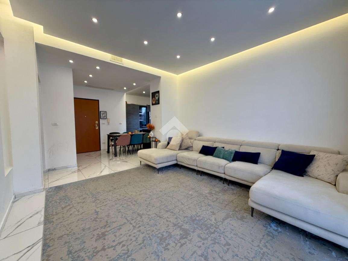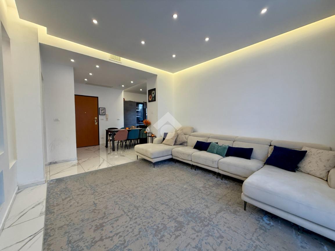 La ristrutturazione ha previsto la sostituzione completa degli infissi e l’installazione di un efficiente impianto di climatizzazione, migliorando notevolmente il benessere abitativo in ogni stagione.