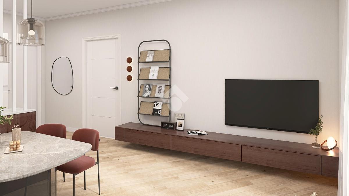L’appartamento si apre su un ingresso che conduce al soggiorno con angolo cottura, ambiente luminoso e ben distribuito. La zona notte è composta da due camere di buone dimensioni, adatte sia a uso matrimoniale che singolo o studio.
